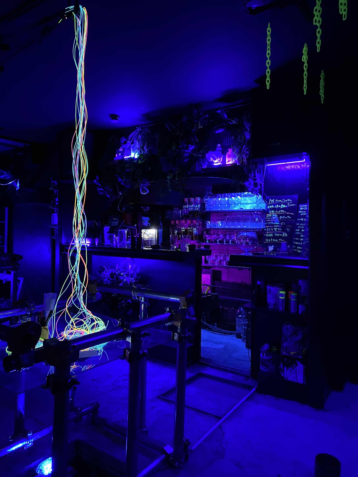 蛍光に光るチェーンをぶら下げてみたり、